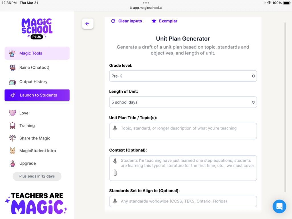 This AI tool is used to create a unit plan. You enter your grade, length and topics and it will create a unit plan.